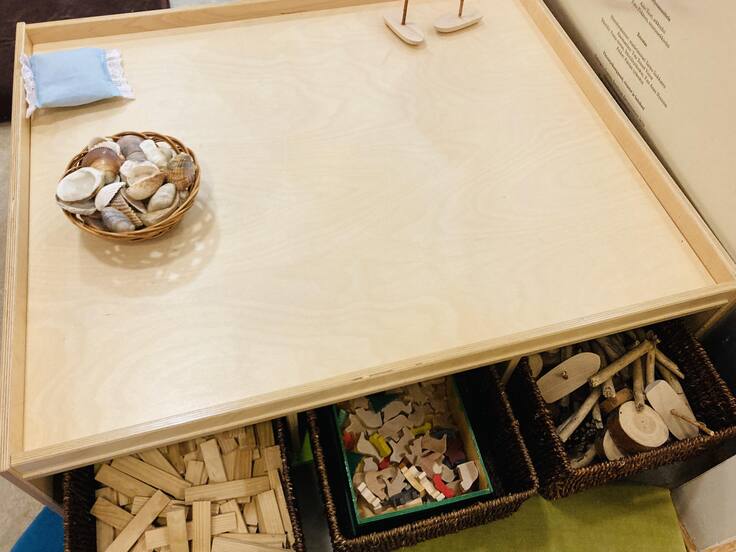 見学の後で、この博物館の館長さんとお話をさせていただきました。10年、20年ぐらい前までフィンランドの幼稚園では、極力自然素材のものを子どもたちの遊びに取り入れることが推奨されていたそうです。館内には実際に、木、木の実、貝殻、毛糸、布などを組み合わせて遊ぶ台もありました。表面の感触や重さの違い、質感を遊びながら感じ取って自然と学んでいたのかもしれないですね。