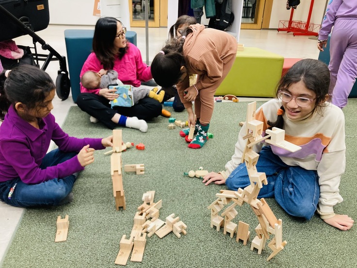 今回のイベントは、昨年秋に開催した木のおもちゃのイベントで出会い、Touch Woodのメンバーに加わってくれた小さなお子さんを持つお母さんが、図書館と連絡を取ってくれたことで実現しました。彼女がいてくれたことで、より広くイベントを知ってもらい、楽しんでもうらうことができました。いつもと同じく、おもちゃをスーツケースから出して並べ終わる前から、子どもたちは見たことがないたくさんのおもちゃを手に取って遊んでくれました。口コミや告知で来てくださった方もいらっしゃいましたが、利用者がとても多い図書館なので「本を返しに来たら偶然木のおもちゃのイベントがあって楽しかったです。次のイベントにも来たいです!」と話しかけてくださる方が多かったです。