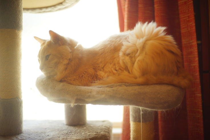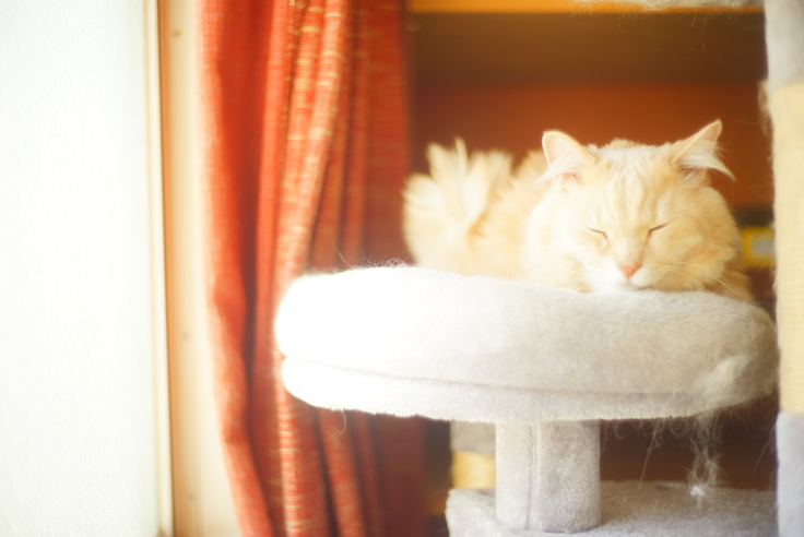 キャットタワーが大好きで、毎日登って遊んだりその上で寝たりと、動けるようになったことをアト自身も噛み締めているように思えます。