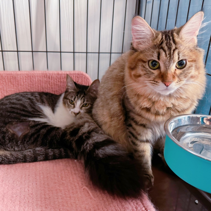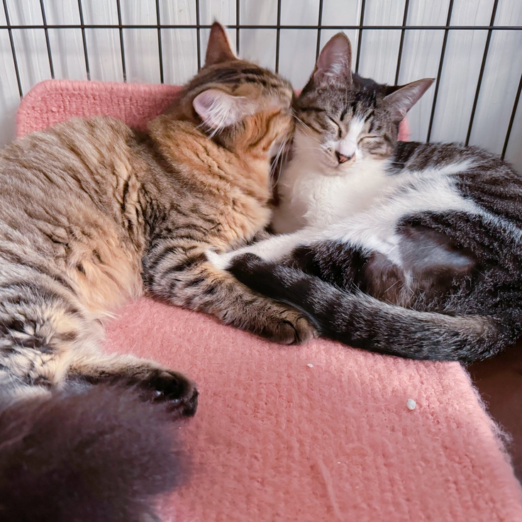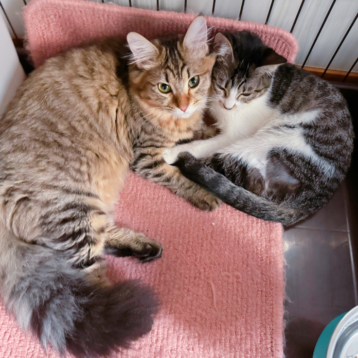 リボンが一緒懸命、ゆりこの毛繕いをしてあげてます。