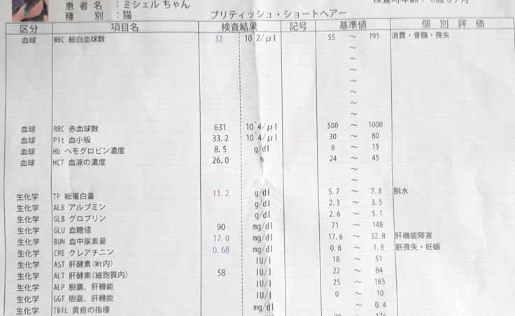 我が家に来てまだ半年も経ってない頃、ミシェルはFIPであると診断されました。