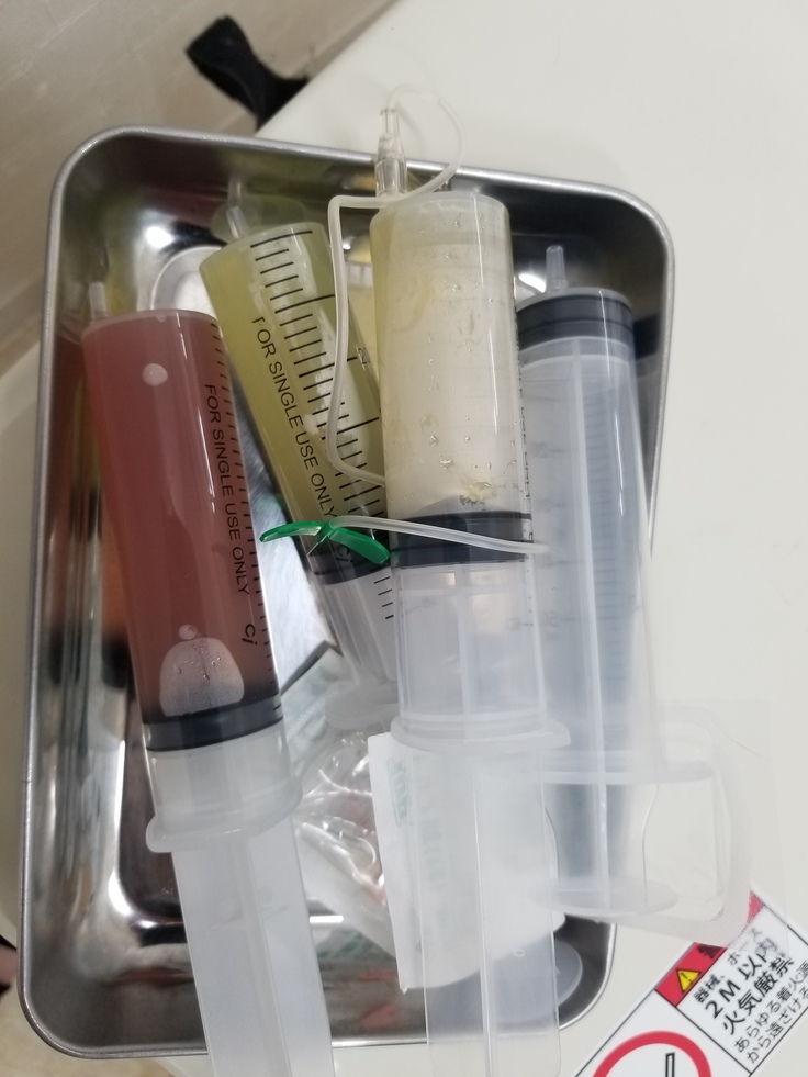 去勢前に念のため健康検査をすると蛋白質の数値が高く、また体内に水が溜まっていることがわかりました。