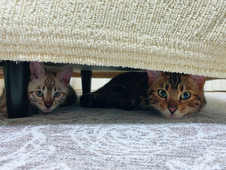 その時、いつもならソファの下には入らないノアがルナが落ち着いて出てこれるようになるまで静かにそばにいてあげていました。