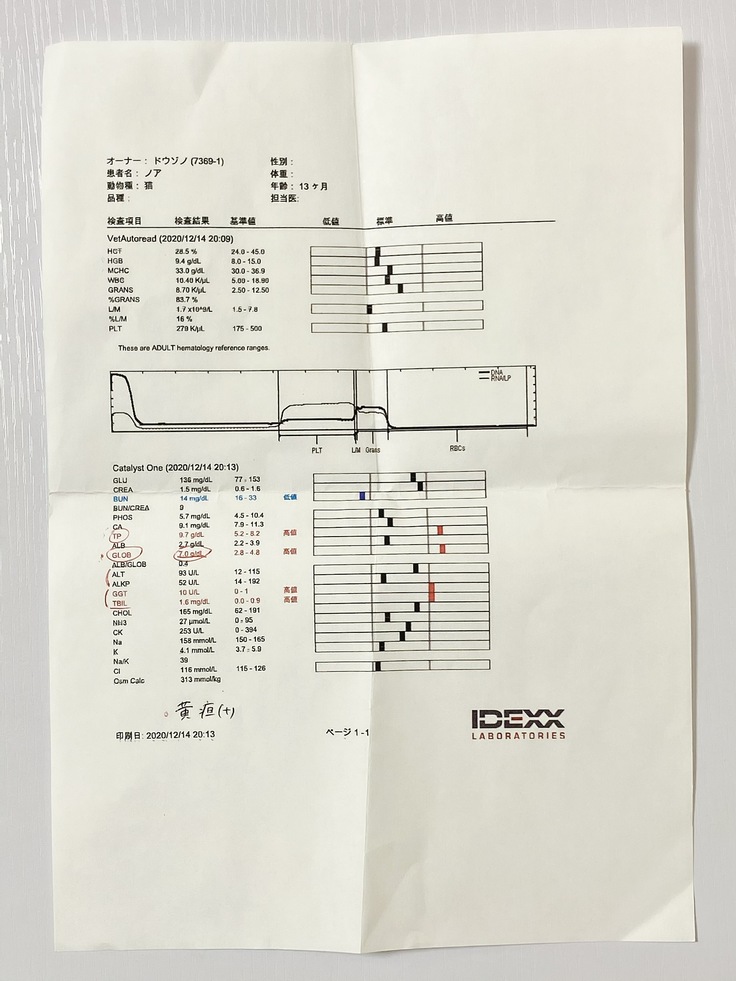 獣医師の診察と検査で高確率でFIPの可能性が高いとの事でした。