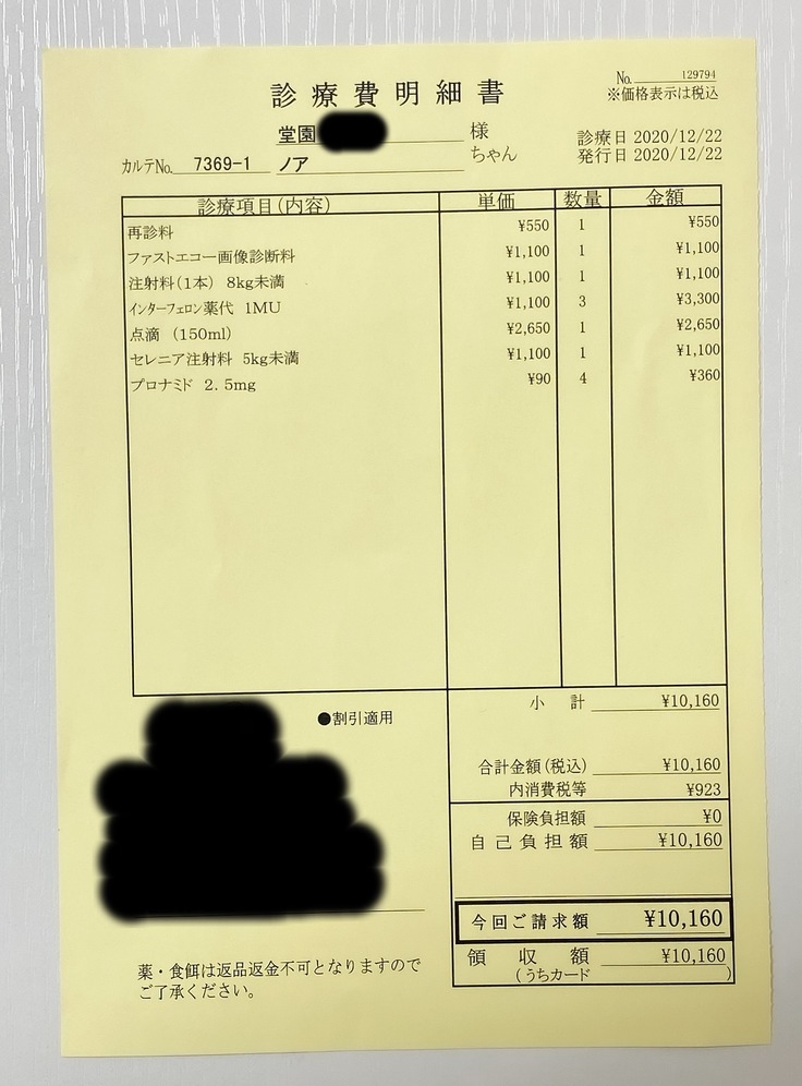 お薬代、検査代などの明細はまた活動報告にて掲載させて頂きます。