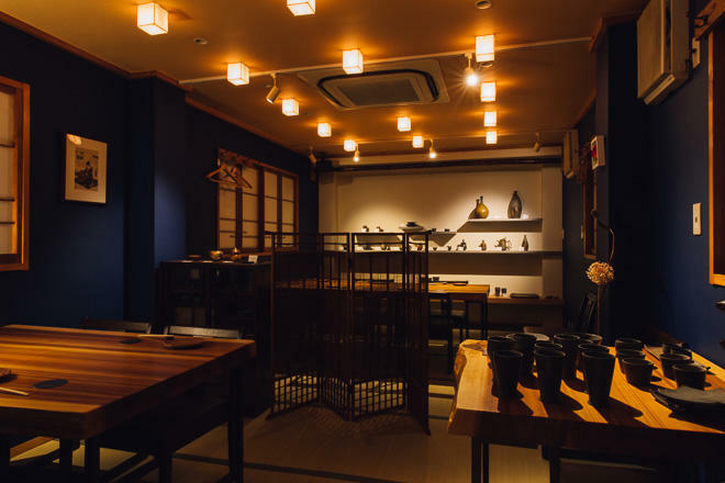 落ち着いた照明と空間、現代作家の絵画や伝統陶器が少しの非日常を演出します。清正にはお席の時間制限は御座いません。穏やかなひと時を提案しています。