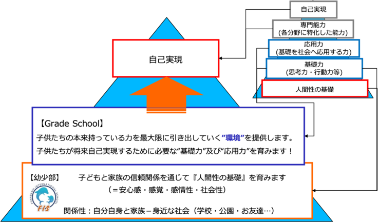 すべての物事において、“基礎”の上に“応用”が成り立ちます。FIS幼少部(funabashi-is.org)では、“人間性の基礎”を育んでいます。