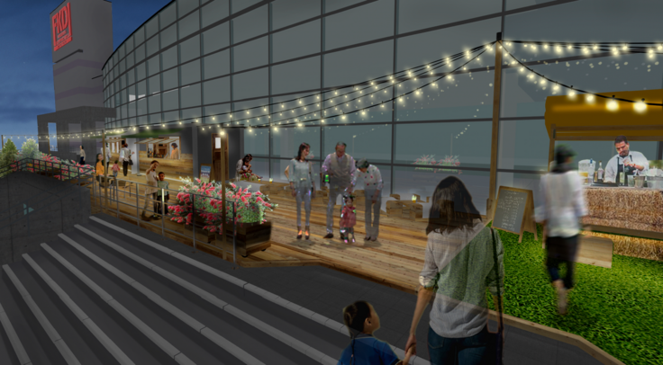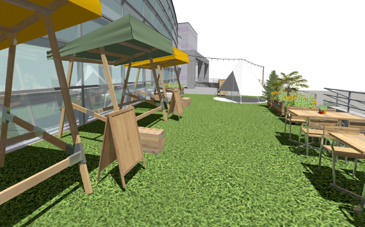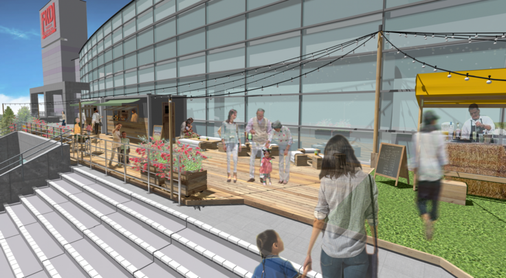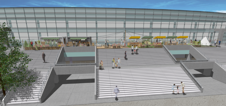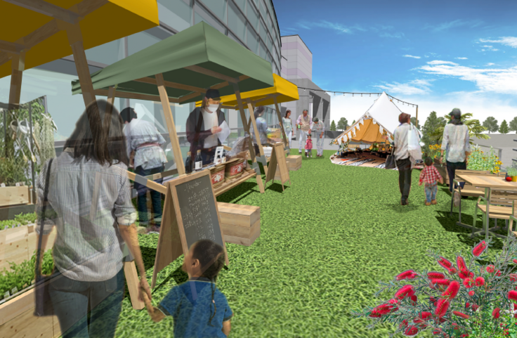 これまでも試験的に、マルシェの開催や無料BBQスポットなど、皆様にお楽しみいただくイベントを開催してきました。しかしながら、コンクリートの地面、吹き抜けの踊り場、階段上にあるという施設状態のため、安全性や快適性に課題がございます。