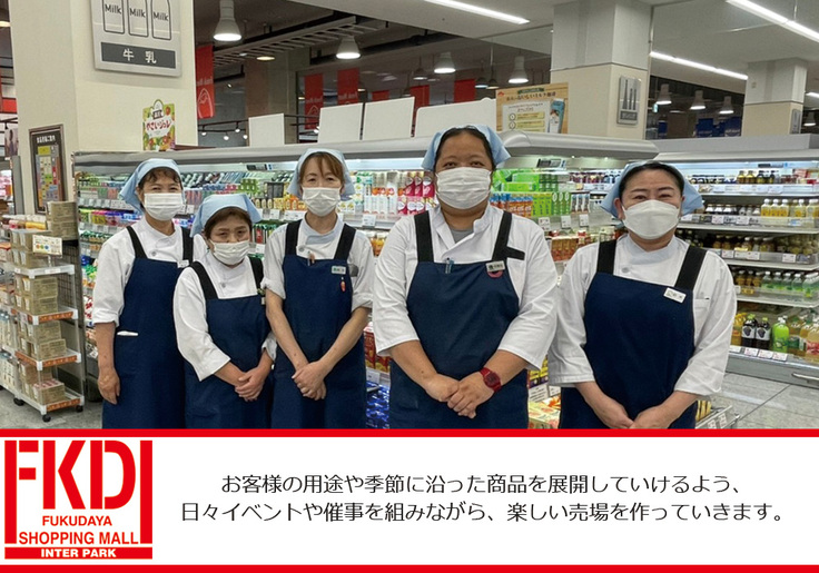 6年前ほどよりインターパーク店にて、食料品部門全体に携わるようになりました。