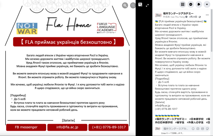 今回のウクライナの状況を見て、日本語教育機関としての社会的責任を考え、