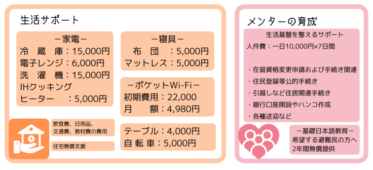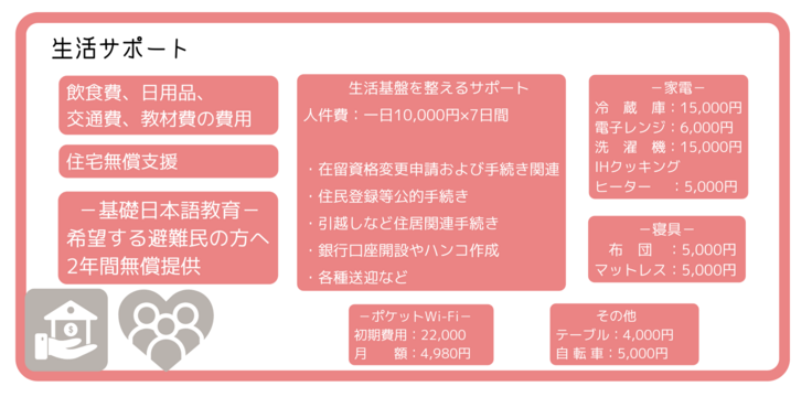 まず、「日本語教育の無償提供2年間」と「住居の無償提供6か月」の支援内容をSNSに載せ、