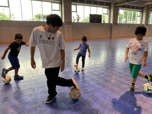 日本屈指のフリースタイルフットボーラーであり、圧巻のハーフタイムパフォーマンスを見せてくれたLYUさんとKo-sukeさんにレッスンしていただきました。
