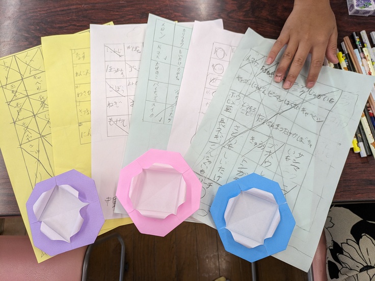 全員で何かをする時間には「野菜ビンゴ」をしました。