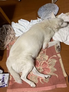 同じ部屋の噛み犬小鉄も、いつしか、足元に眠るようになりました。
