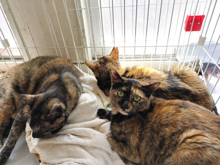 ↓錆柄ダブルと三毛 (左から)紀子様、モネ、まーちゃん