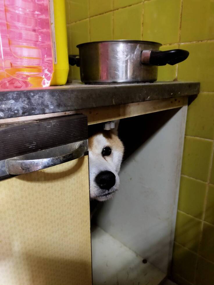 ↓お散歩から帰宅後、自分の世界に入る「こてつ」