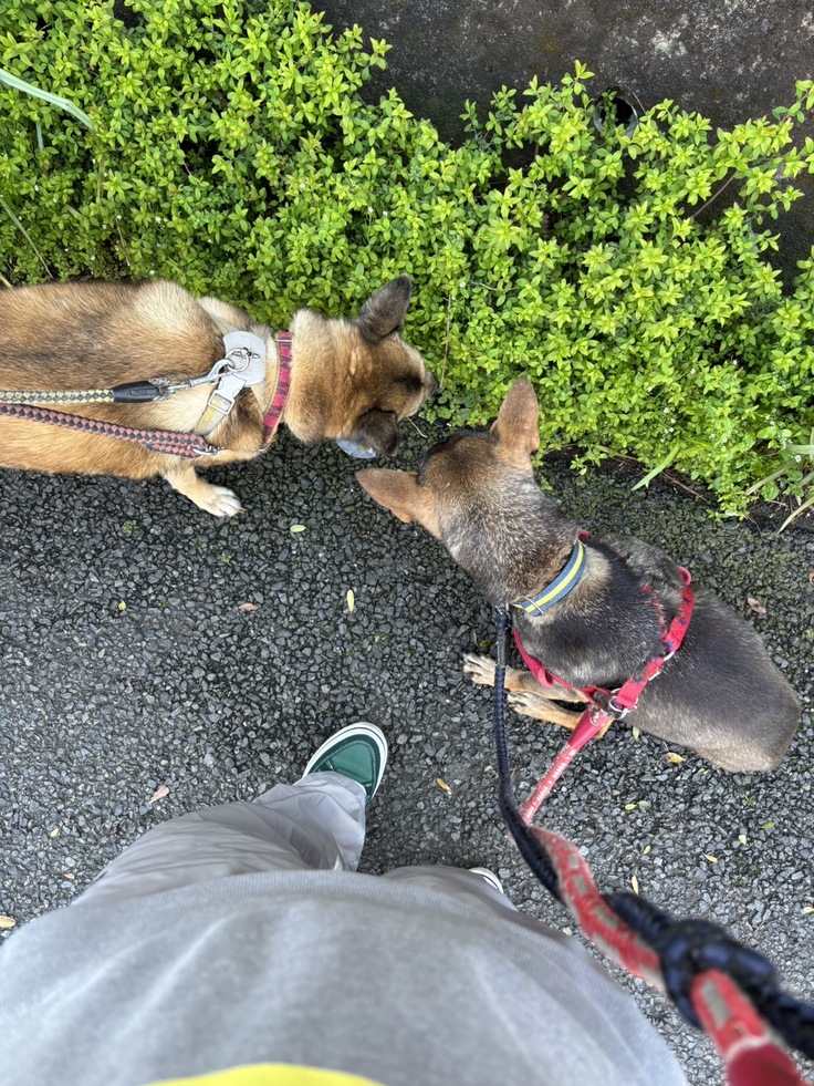 あんこは足が悪くて時々座り込んでしまうけれど、みなみと一緒に最後まで頑張って歩いていました🐾
