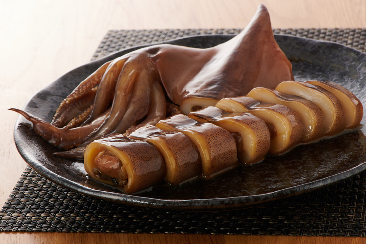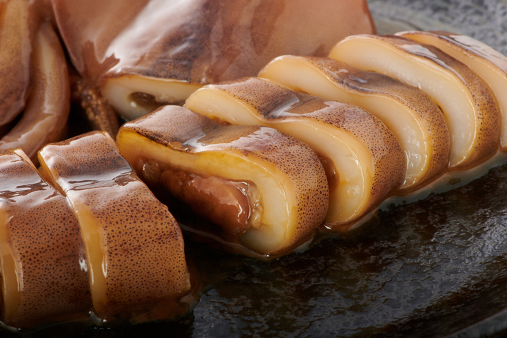 スルメイカを沖で生きたままタレに漬け込むと、身や肝の隅々まで旨味が回ります。そのため漬け込みダレも一切妥協をしていません。特に味の深みや香りの決め手となる酒冷凍技術にこだわり抜き、本物の鮮度と旨さを食卓に。