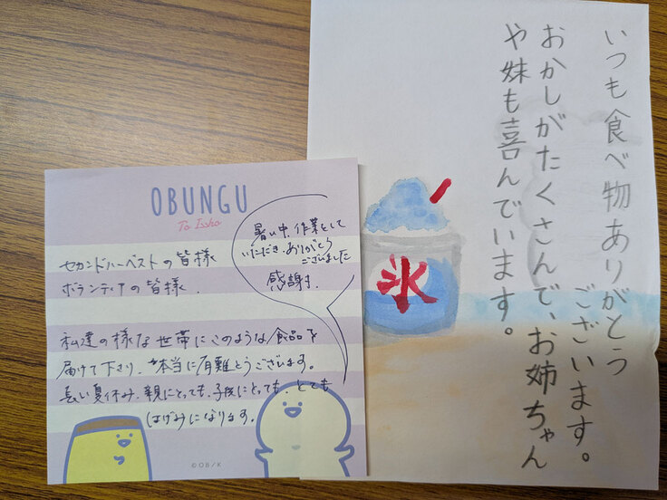 食品の種類としては、子どもたちに喜ばれるお菓子に加え、そうめん、めんつゆといった季節感のある食品も送ることができました。