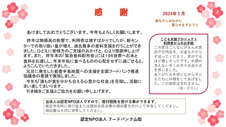 ・寄付金領収書(毎年1月に合算領収書を郵送)
