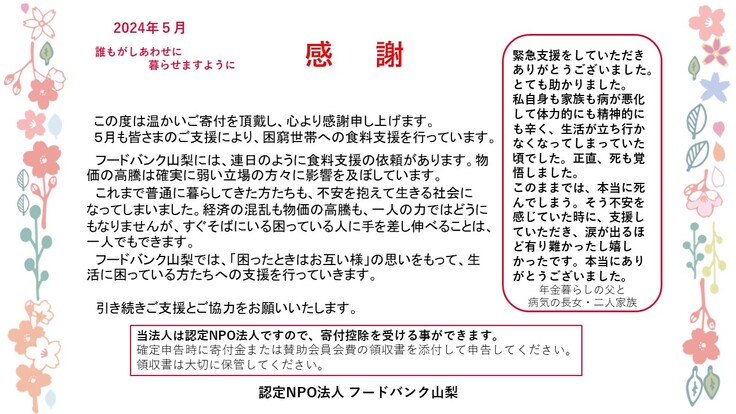 ・寄付金領収書(毎年1月に合算領収書を郵送)