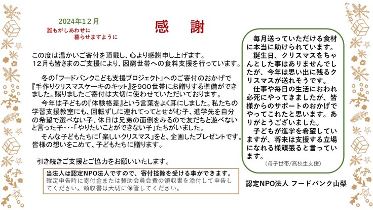 ・寄付金領収書(毎年1月に合算領収書を郵送)