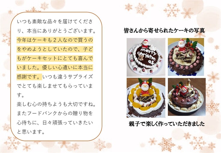 【手作りクリスマス・ケーキのキット】を食品と一緒にお贈りしました。