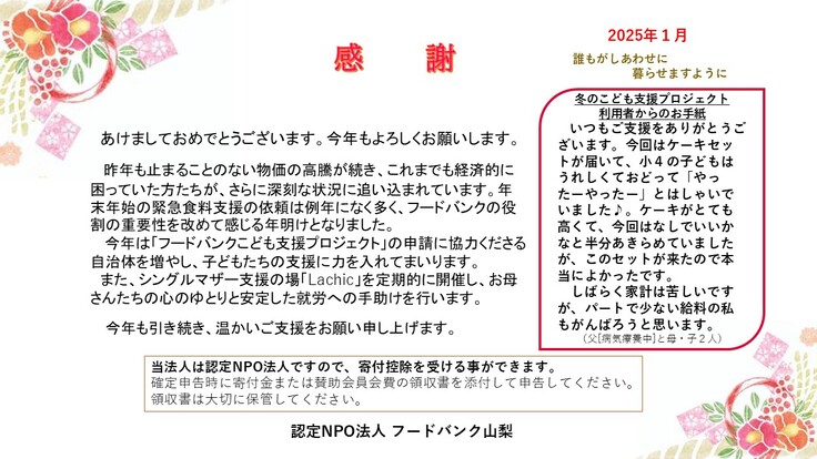 フードバンク山梨のこどもフード・サポーターの皆様へ