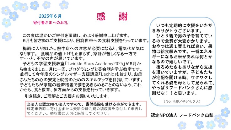 6月の寄付者様へのお礼