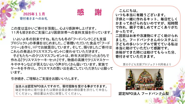 ・寄付金領収書(毎年1月に合算領収書を郵送)