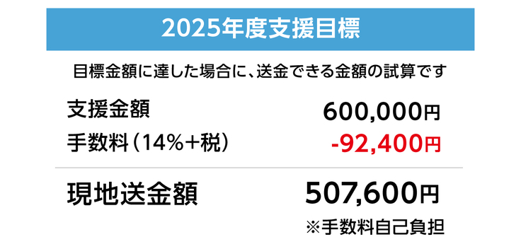 ※手数料や事務経費は別事業の収益や、活動全般への寄付より支出しています。毎月のご支援会員も募集しています(詳細はこちら)