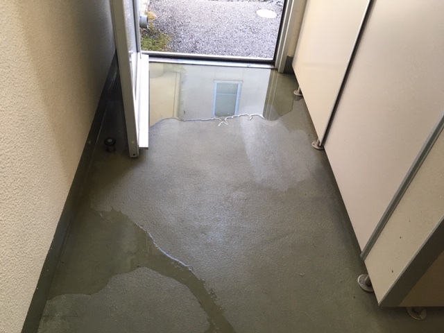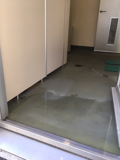 個室の手洗いタンクから漏水が発生し、現在この様に水たまりが出来ております。