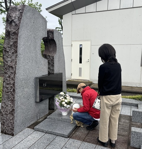 ユーザー様のご子息夫妻が来所され、多くの盲導犬が眠るカロートにアルタの遺骨を納めていただきました。ご夫妻の焼香の後に、出勤していた職員全員で線香を手向けさせていただきました。ご子息様が小学生の時には、ハーネスを外したアルタとの楽しいひと時が良い思い出ですとの話をうかがいました。