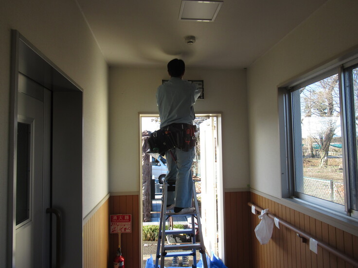 設置後20年を経過し、交換の必要に迫られていた弊協会施設内の音声付き誘導灯と火災通報装置について、今回のクラウドファンディング資金を活用させていただき交換を行いました。施設の火災発生時は視覚障がい者の方にとって避難方向の認知は、音に頼るしかありませんで不備は許されません。弊協会施設は、視覚障がい者の方だけではなく、多くの方々がご利用になりますので、今後も弊協会施設を安心・安全にご利用いただけるよう施設内の機械設備の定期的な点検・交換を図ってまいります。