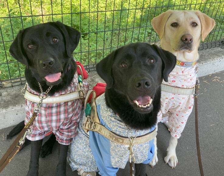 この夏は猛暑が続くなかで、日中の暑い時間を避けて、早朝と夕方に訓練を実施するなど、犬たちの体調面を第一に考え、日々訓練を継続してまいりました。犬たちが健康で楽しく訓練できることが、優秀な盲導犬育成の大前提であると認識しスタッフ一同日々の業務にあたっております。