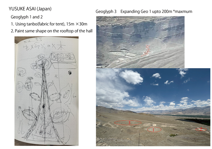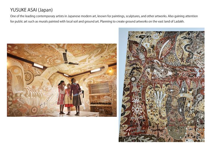 淺井裕介さんがラダックの大地に描く地上絵の一つは、遊牧民のテント素材の帆布をキャンバスに、現地の土とアクリル絵の具や水性ペンキなどで描かれます。2日間の展示後は強風や雨を考慮し、すぐに撤収。最大級にして世界最速で消えてゆく地上絵となります。