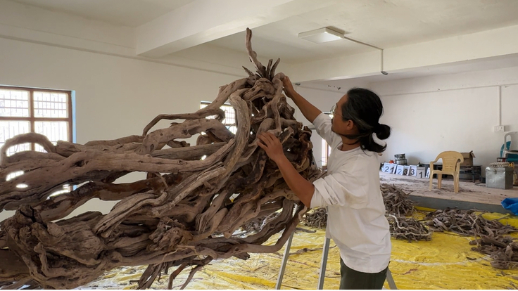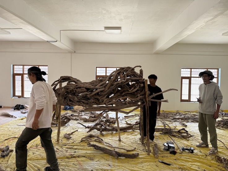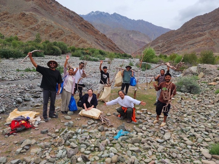 流木集めは、ラダックのアーティストたちの協力を得て、ハイスピードで進んで行きました。