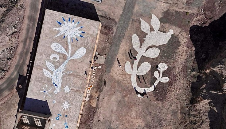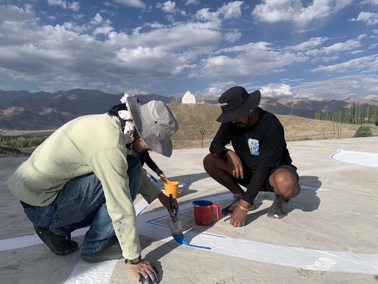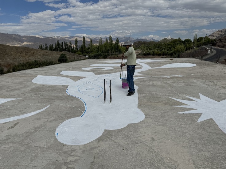 ラダックの色濃い青空の下で、淺井裕介さんの3つの地上絵がその全貌を明らかにしつつあります。日々ラダック人アーティストチームの協力を得つつ、制作プロセスを共有しています。