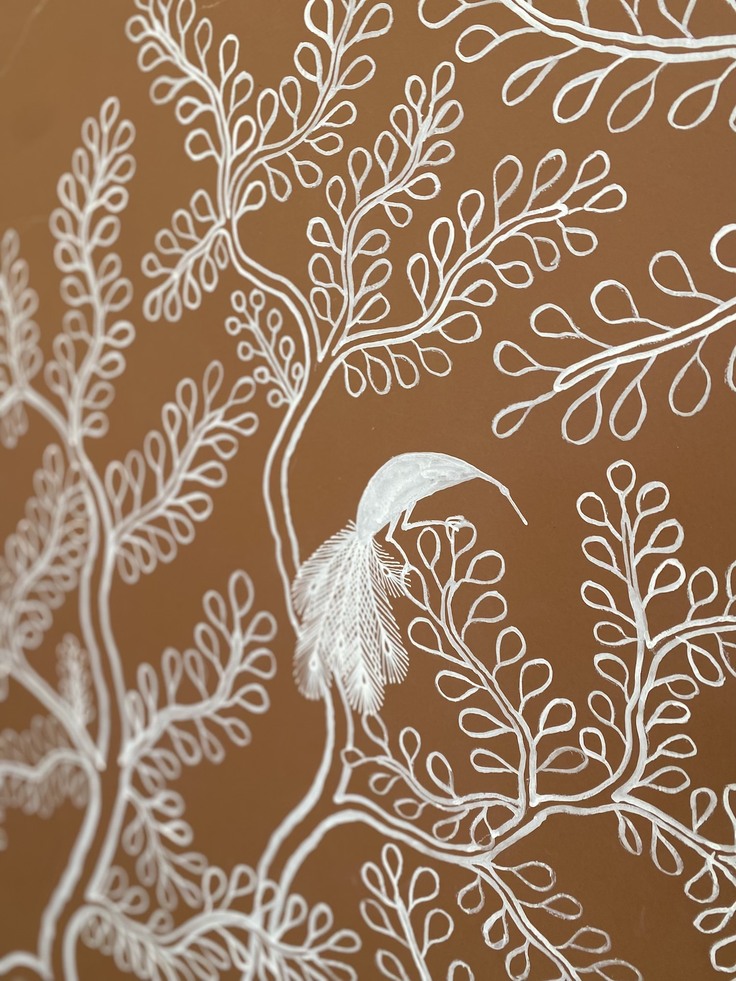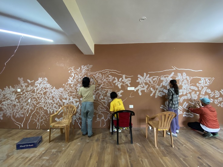 そんな彼らがマトー村の図書館1階のコミュニティホールに描いているのは、何千万年もの記憶を携えている木々の姿です。
