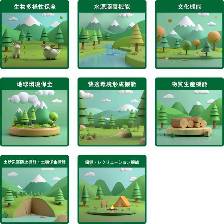 森林の多面的機能は、8つあると言われています。