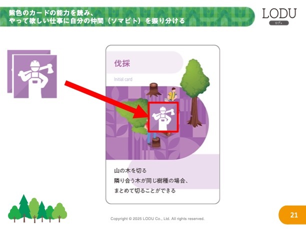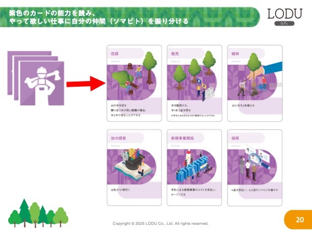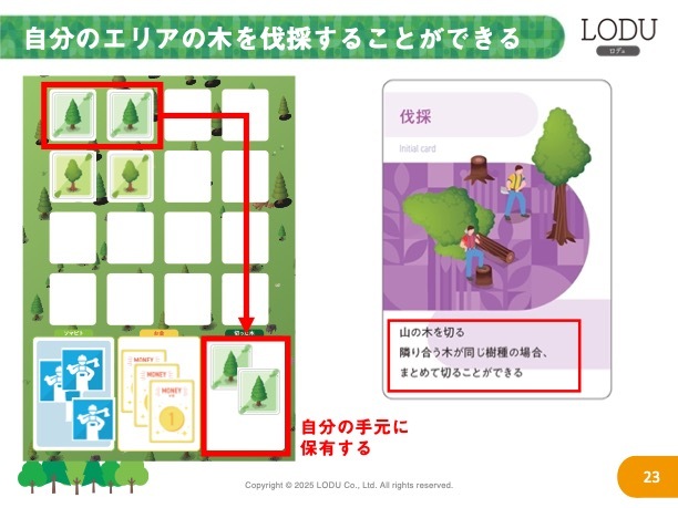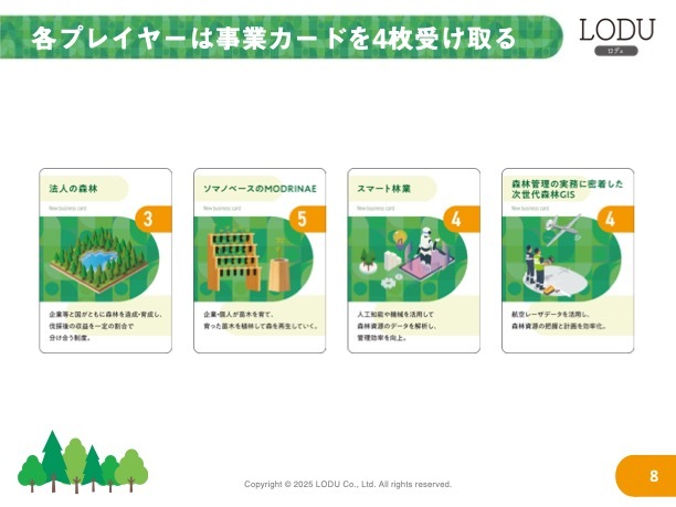 森林保全ボードゲームの中に、お好きな森林保全に関するソリューションをオリジナルカードとして登場させることができます。