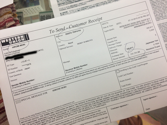 寄付金をネパールのディパックさんへ無事送金いたしました!!