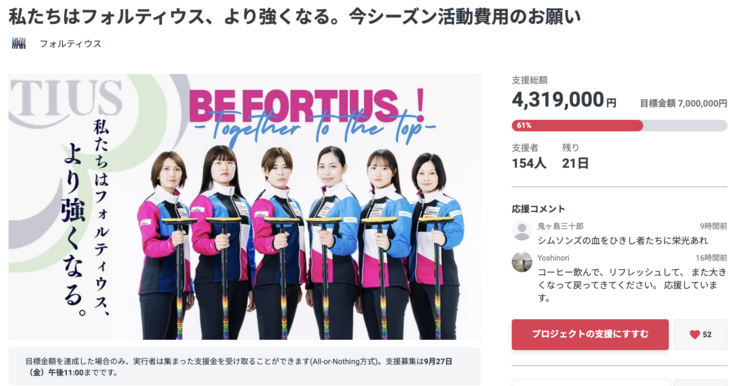 皆さまからの温かいご支援のおかげで、9/6 14:00現在、4,319,000円/61%の達成率となっています!