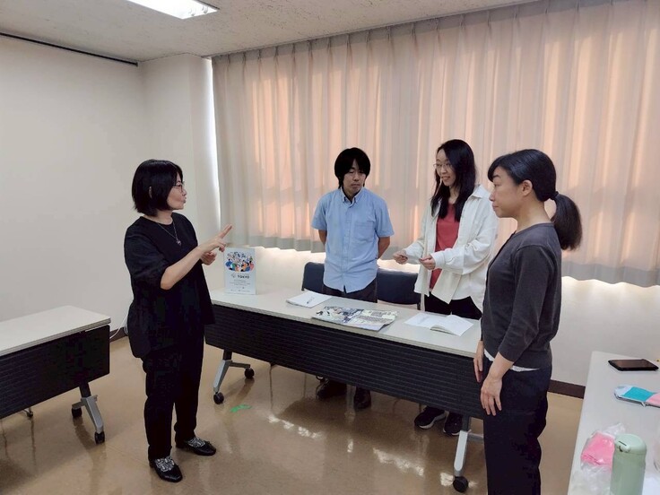 9月30日に今回の公演で観劇サポートを担当してくれる武藤さんと可兒さん主導のもと特定非営利活動法人シアター・アクセシビリティ・ネットワーク(TA-net)の「廣川麻子」さんと「石川絵里」さんをお迎えして「サポート講習会」を行いました。