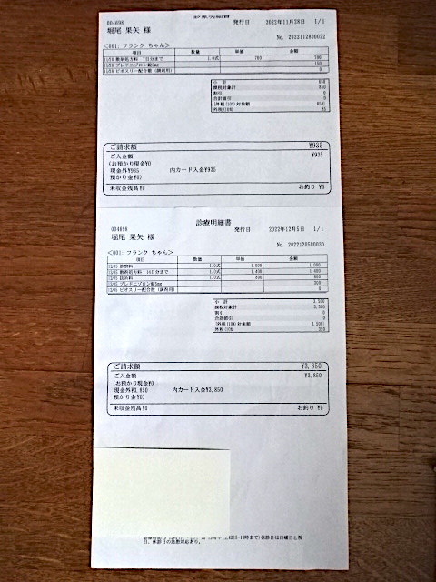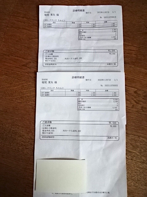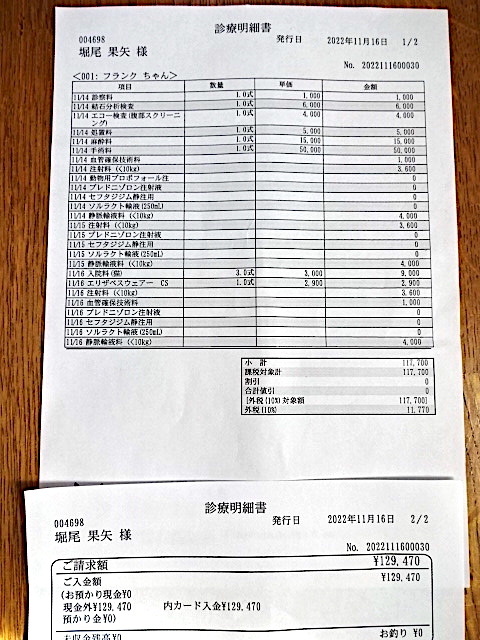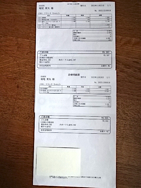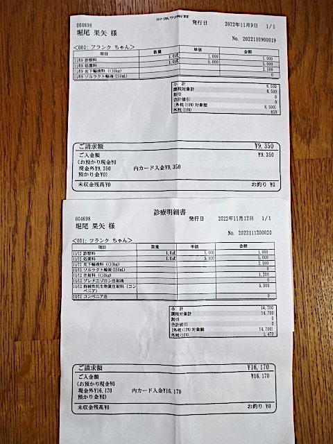 11/28 セカンドオピニオン病院 療法食 薬代 8,995