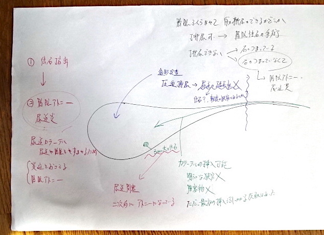 出ていなくて、常に膀胱に残ってしまっているという事実に、先生が引っかかりを感じていた事です。これはまだ何かあるかも知れずということですが、ひとまず石からになりました。