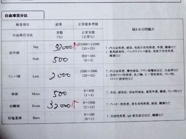 1,好酸球増加症 (この子の場合、常に好酸球3万前後)