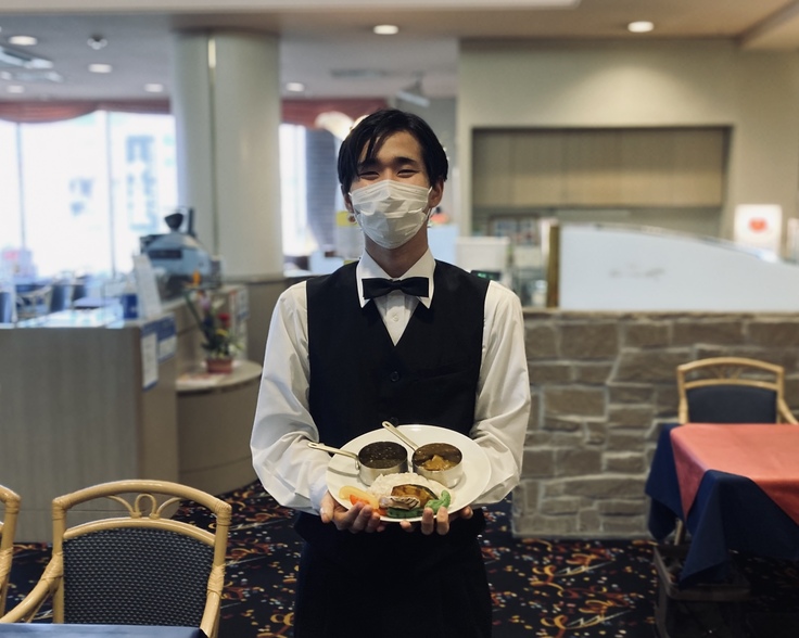 スタッフインタビュー企画第4弾は、高校卒業後に入社し、現在3年目の若手・山田雄大です。彼は入社以来、当ホテルのサービススタッフとして、コロナ以前は宴会や婚礼、典礼、コロナ以降はレストランを中心に幅広く活躍してくれています。