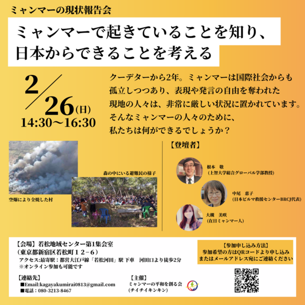 2年間未解決のまま人道危機に陥っているミャンマーミャンマーのために今できることを考えるきっかけにしていただけたら幸いです。ご参加を、心よりお待ちしております。