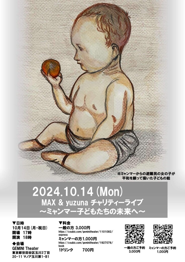 ライブの収益は、全額ミャンマーの子供たちや避難民に支援されます。